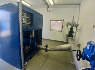 A projekthez tartozott még egy légfúvó berendezés szállítása és beépítése is. A megrendelő igénye szerint a gépházban lévő kisebb teljesítményű, régi légfúvót egy új, nagyobb léghozamú fúvóra cseréltük.